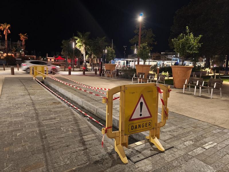 Und habe ichs nicht gesagt, diese eigenartigen Wasserbecken, die man auf dem neu gestalteten Platz an mehreren Stellen geschaffen hat, sind jetzt abgesperrt. Es haben sich wohl des Nachts bereits ein paar Leute die Füße gebrochen.